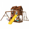 Детский городок изготовлен из северной древесины хвойных пород, обработанной безопасной декоративно-защитной пропиткой. Технология значительно увеличивает срок службы конструкций, повышает прочность древесины, защищает её от гниения и грибков. Обработка придаёт дереву приятный оттенок, проявляет и подчёркивает его текстуру. Используемая пропитка не содержит токсичных компонентов, экологична и абсолютно безопасна для ребёнка. Состав прошёл санитарно-эпидемиологическую экспертизу в Центре гигиены и эпидемиологии в г. Коломне.